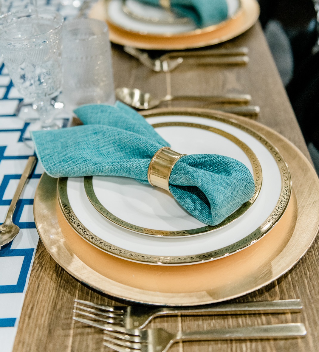 Blue Azure Vintage Linen is a polyester based fabric with the look of raw teal burlap, or jute, but finishes with a soft hand, giving it a rustic, yet elegant feel.