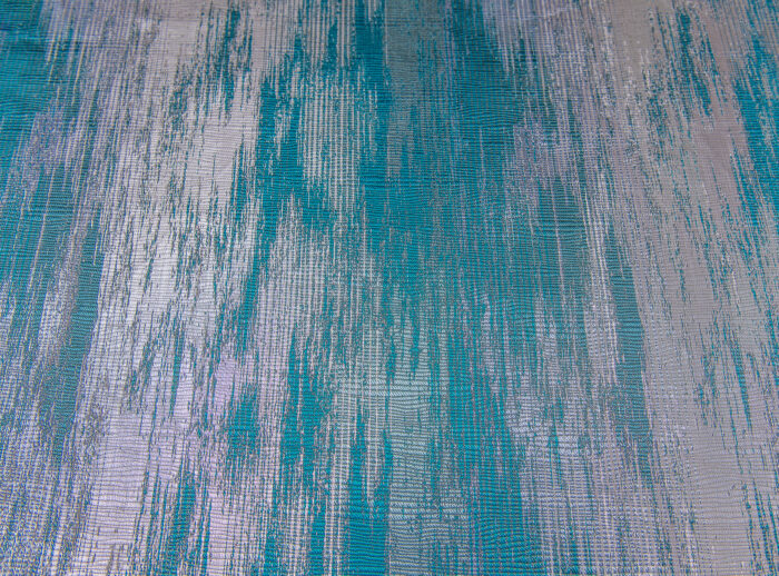 Blue Abstract is a polyester print incorporating metallic threading with various hues of blues and silver. Blue Abstract is also Reversible.