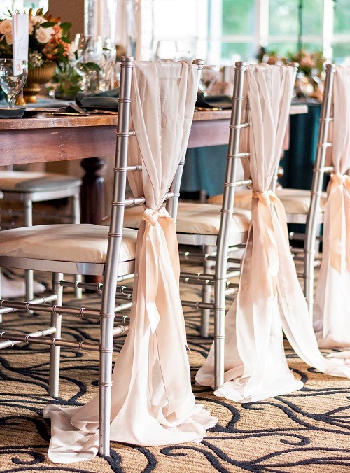 Champagne Voile is a lightweight, sheer fabric and means “veil” in French, hence the reason our extra wide and extra long table runners are called table veils. Our Voile can be used to create elegant gathered looks, sheer overlays and full romantic chair designs.