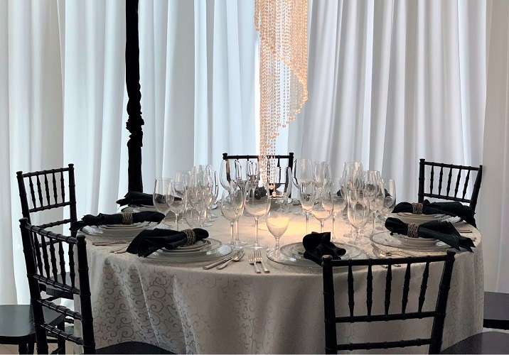 White & Silver Metallic Swirl is a reversible fabric with a contemporary swirl or scroll design sewn with metallic thread.